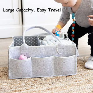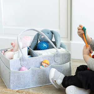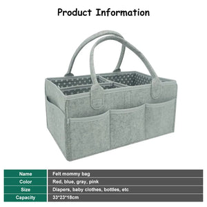 Introducing the Multi-Function Baby Felt Storage Bag, a versatile organizer designed to simplify diaper changes and baby care routines. This portable holder bag features multiple compartments and a large pocket for storing diapers, wipes, baby essentials, and even toys. Its ergonomic design ensures everything you need is conveniently within reach, whether at home or on the go.