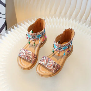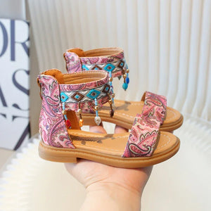 These versatile sandals are designed for various summer activities, from beach outings to casual gatherings. The national retro style and tassel accents make them suitable for both everyday wear and special occasions. Pair them with shorts, dresses, or skirts to create a fashionable ensemble that showcases your child's unique style and personality.