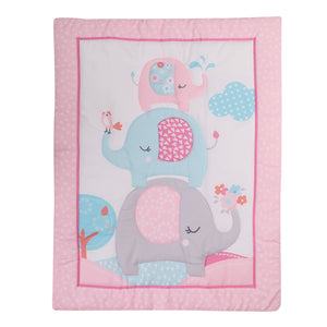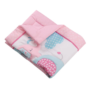 The quilt in this bedding set is crafted from soft and breathable materials, providing warmth and comfort for your baby. Adorned with a delightful flower and elephant pattern, it adds a touch of whimsy to the nursery while keeping your baby snug during sleep and playtime.