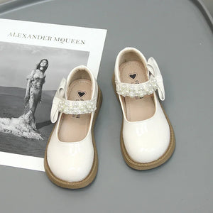 These Kids Fashion Pearls with Bow shoes are adorned with beautiful pearl and bow accents, making them an ideal choice for special occasions. The delicate pearls and charming bow enhance the overall look, adding a playful yet elegant touch that your child will love.
