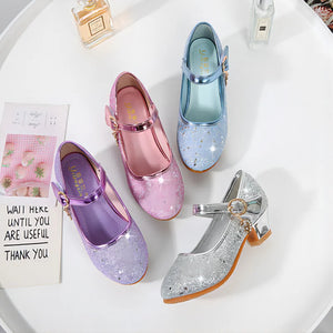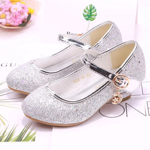 Introducing our Children Princess Shoes, perfect for making any little girl feel like royalty. These stunning shoes feature a high heel design and are adorned with glitter and crystal accents, adding a touch of sparkle to any outfit. Ideal for special occasions, these shoes are sure to make your child shine.