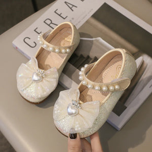 Introducing our Children's Leather Shoes, adorned with a charming bowknot, pearls, and a love crown detail. These Mary Jane shoes are perfect for young girls who love to embrace their inner princess. Designed for both spring and autumn, these shoes combine classic elegance with modern fashion, making them a versatile addition to any child's wardrobe.