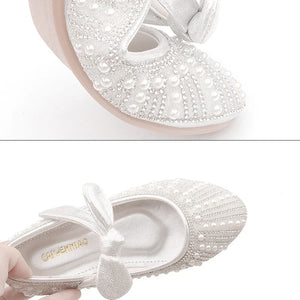 Crafted from high-quality materials, these shoes are built to last. The durable construction ensures they can withstand the excitement of special events while maintaining their elegant appearance. The securely attached pearls add a touch of luxury and sparkle, enhancing the overall look of the shoes. Easy to clean and maintain, they will remain a staple in your child's wardrobe.