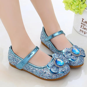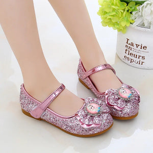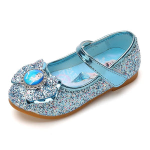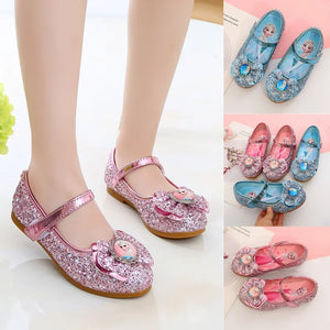Introducing our Frozen Anna Elsa Princess Kid Girls Leather Shoes, perfect for young fans of the beloved Frozen characters. These shoes feature a glittering design inspired by the magical world of Anna and Elsa, complete with a crystal butterfly bowknot. Ideal for weddings, parties, and everyday wear, these shoes will make your child feel like a true princess.