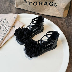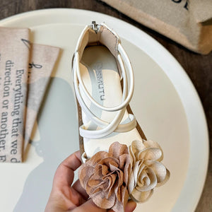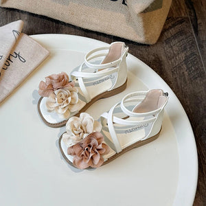 These sandals boast a stylish beige hue that complements various summer outfits. The addition of flower pearls enhances their visual appeal, adding a touch of sophistication to your child's ensemble while exuding a playful and feminine charm.