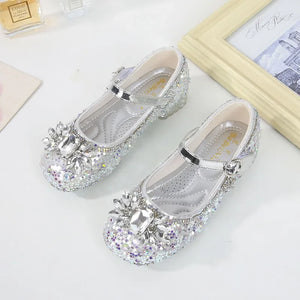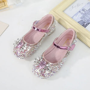 Introducing the latest in children's fashion: Kids Girls High Heels. These shoes are perfect for little girls who want to feel like princesses at parties, dances, and weddings. Designed with both style and comfort in mind, these crystal leather shoes are a must-have for any special occasion.