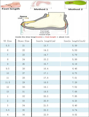 36 (Inner 22.9CM), 21 (Inner 13.7CM), 22 (Inner 14.2CM), 23 (Inner 14.7CM), 24 (Inner 15.2CM), 25 (Inner 15.7CM), 26 (Inner 16.4CM), 27 (Inner 17.1CM), 28 (Inner 17.8CM), 29 (Inner 18.5CM), 30 (Inner 19.1CM), 31 (Inner 19.5CM), 32 (Inner 20.2CM), 33 (Inner 20.9CM), 34 (Inner 21.5CM), 35 (Inner 22.2CM) |