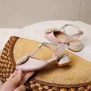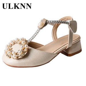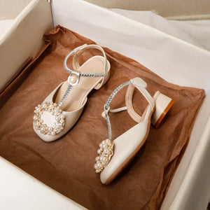 Introducing our Children's Sandals with Pearl Rhinestone embellishments, designed to bring elegance and sophistication to every young girl's wardrobe. These high-heel shoes are perfect for adding a touch of glamour to any outfit, making them ideal for weddings, parties, and special events. The combination of pearls and rhinestones creates a stunning, eye-catching look that young fashionistas will adore.