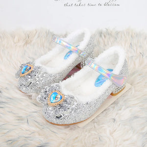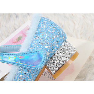 Introducing our Winter Shiny Kids Frozen Princess Elsa High Heels, the perfect footwear for your little girl's magical adventures. Inspired by the beloved Frozen character Elsa, these high heels feature a sparkling design that will make any girl feel like a true fairy princess. Ideal for masquerade parties, birthday celebrations, and dress-up events, these shoes are designed to add a touch of enchantment to any outfit.
